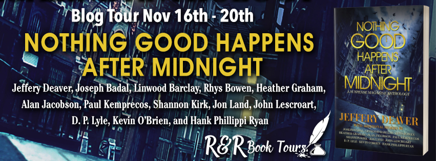 Teaming up with New York Times bestselling author Jeffery Deaver, Suspense Magazine offers up a nail-biting anthology titled: “Nothing Good Happens After Midnight.” This thrilling collection consists of thirteen original short stories representing the genres of suspense/thriller, mystery, sci-fi/fantasy, and more.
