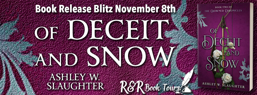 Happy publication day to author Ashley W. Slaughter! Read on for more info about the second novel in The Crowned Chronicles, Of Deceit and Snow and grab yourself a copy today!